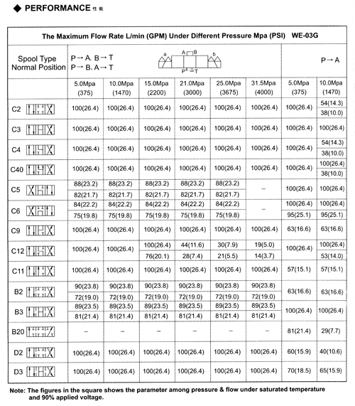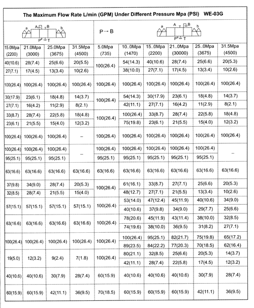 電磁換向閥WE-03流量曲線