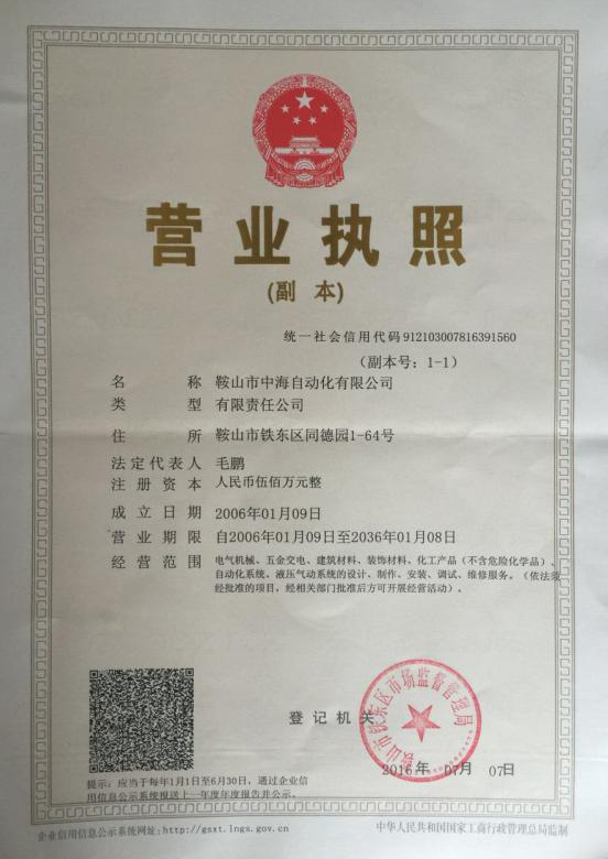 版權(quán):Anshan City Zhonghai Automation Co., Ltd,鞍山市中海自動(dòng)化有限公司